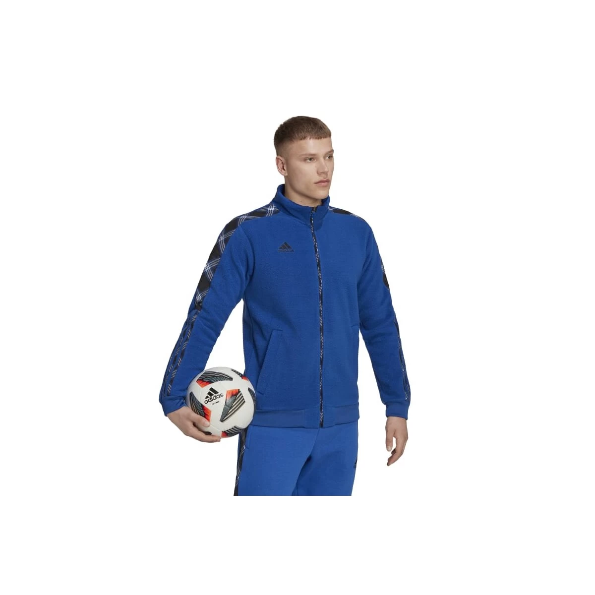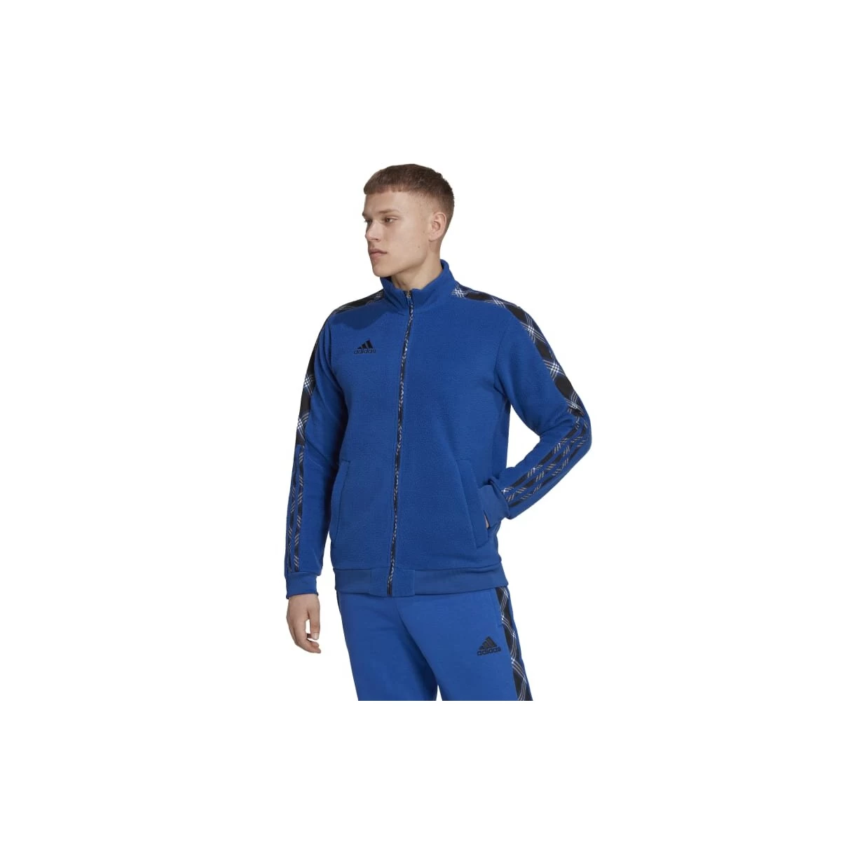 Bei diesem Piece treffen gleich zwei Klassiker aufeinander. Die adidas Tiro Fußballjacke kommt mit Schottenkaro-Details – ein unter Fans beliebter Style. Sie ist aus weichem Fleecematerial, das bei kaltem Wetter für warmen Tragekomfort sorgt. Außerdem garantiert die feuchtigkeitsabsorbierende AEROREADY Technologie ein trockenes Tragegefühl, wenn du nach dem Sport relaxt. Das Produkt ist Teil des Engagements gegen Plastikmüll und besteht zu 100 % aus recycelten Materialien.