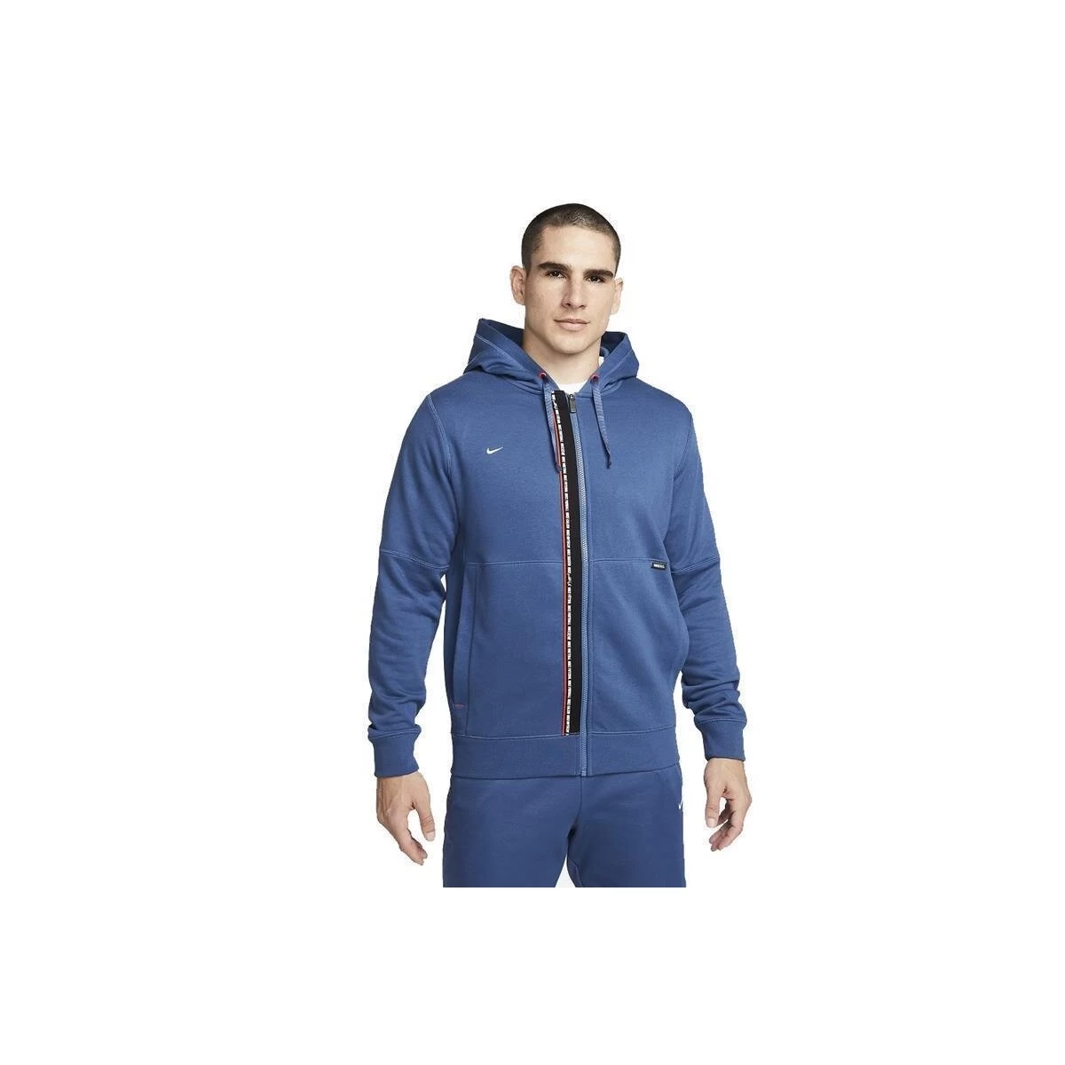 Unser Tribuna Hoodie sorgt mit weichem French-Terry für leichtgewichtige Wärme und Tragekomfort auf dem Spielfeld und bei deiner täglichen Routine. Premium-Details wie die mehrsprachige „Nike Football“-Grafik auf dem Reißverschluss feiern die Kultur des Fußballs.